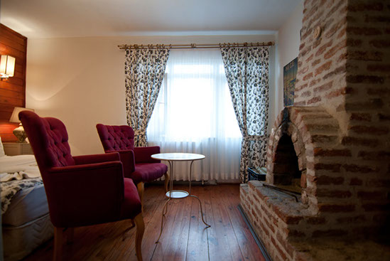 Şömineli  Oda : 20 m2,  Bahçe manzarası, Çift kişilik yatak .
